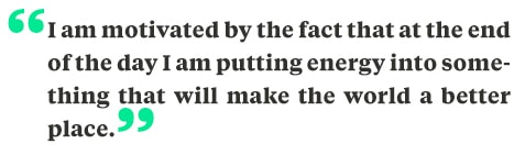 I have always been steadfast in pursuing what I believe in and what I'm passionate about. It’s very important to me to have an active role in determining where I put my time and energy, because we spend so many hours working. I am motivated by the fact that at the end of the day I am putting energy into something that will make the world a better place.